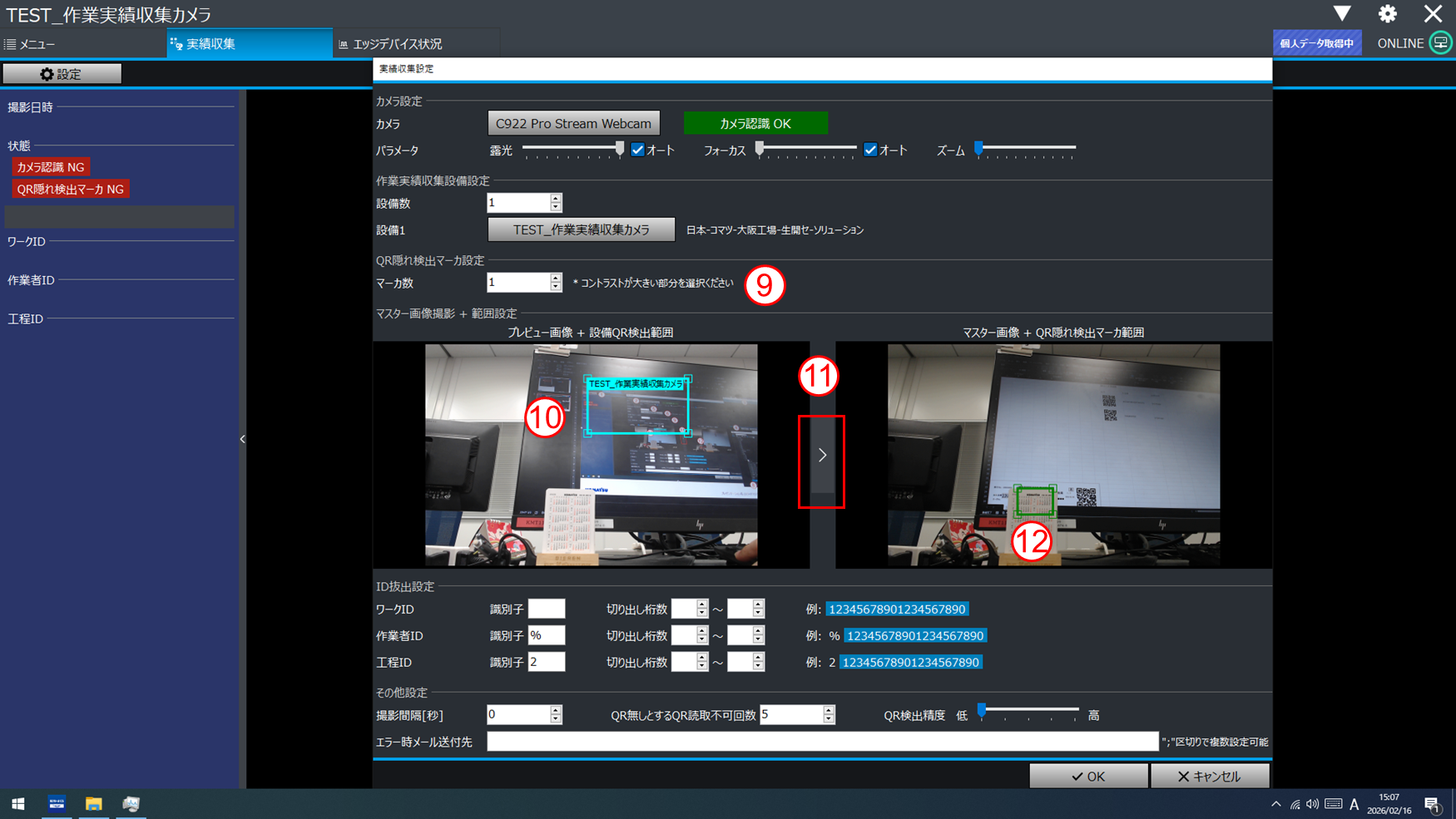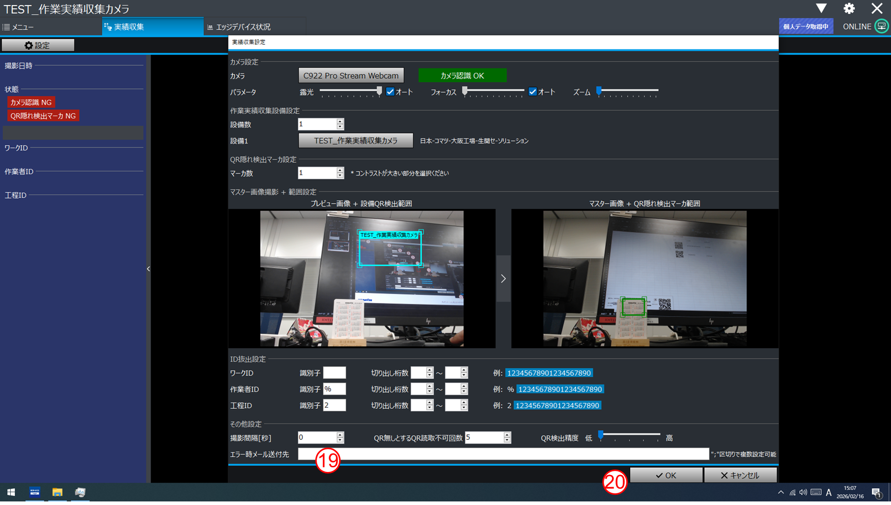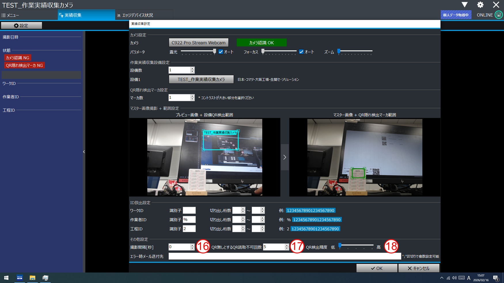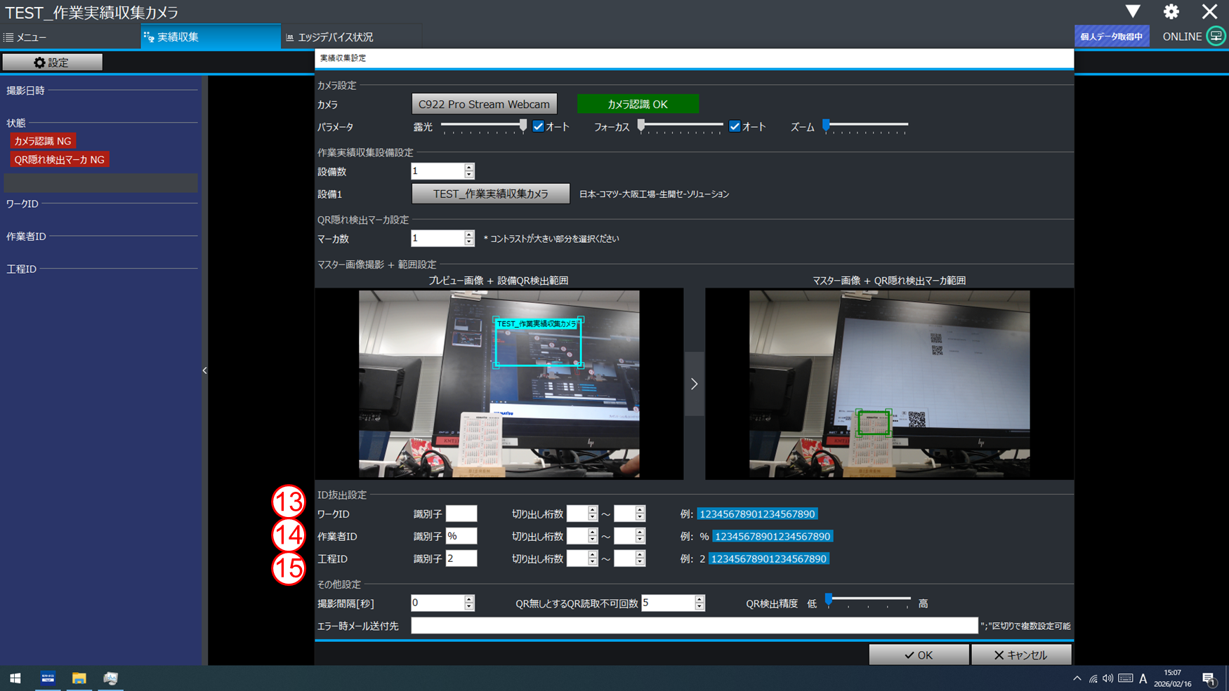 ⑬~⑮ワークID、作業者ID、工程ID検出設定 #