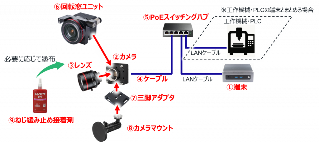 | ①端末 | 推奨端末参照 工作機械・PLC用の端末とまとめることも可能です。その場合は複数台を接続を参照してください。 | |