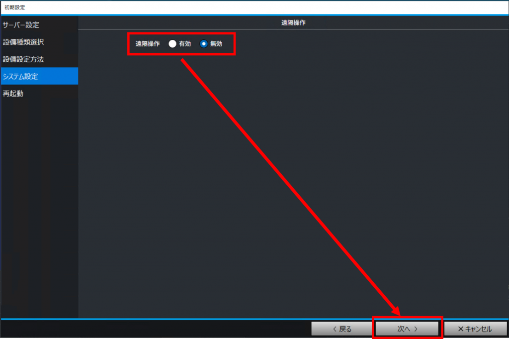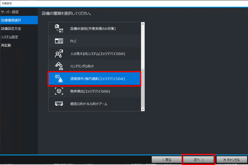 インストール時の設備は「遠隔操作/機内撮影」を選択してください。